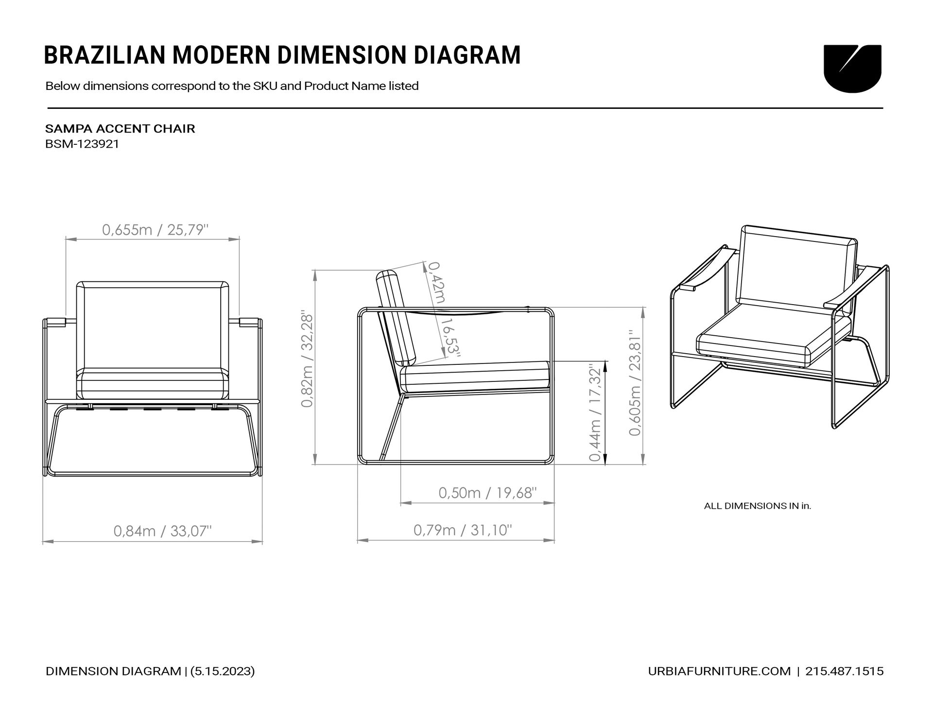 Skillfully crafted in Brazil, the Sampa Arm Chair showcases a thin metal wire frame that gracefully balances delicacy and sturdiness, creating a captivating visual aesthetic. The seat and back of the chair boast monolithic detached cushions, providing both comfort and a modern appeal. Striking leather straps adorn the arms and back, adding a touch of sophistication to the chair's overall design. With its seamless combination of style and comfort, the Sampa Arm Chair becomes a focal point that elevates any living environment.
