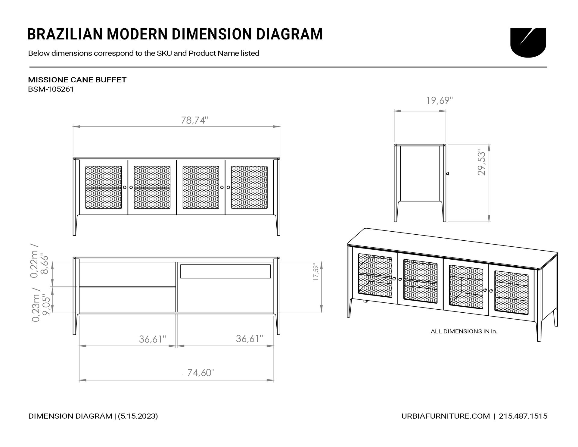 Meticulously crafted in Brazil, the Missione Cane Buffet presents a captivating blend of style and functionality. Suitable for both living and dining spaces, this buffet showcases clean lines and a contemporary aesthetic. The natural cane cabinet door fronts and veneer case add an organic charm to its design. With four doors, it offers ample storage for your living and dining essentials.